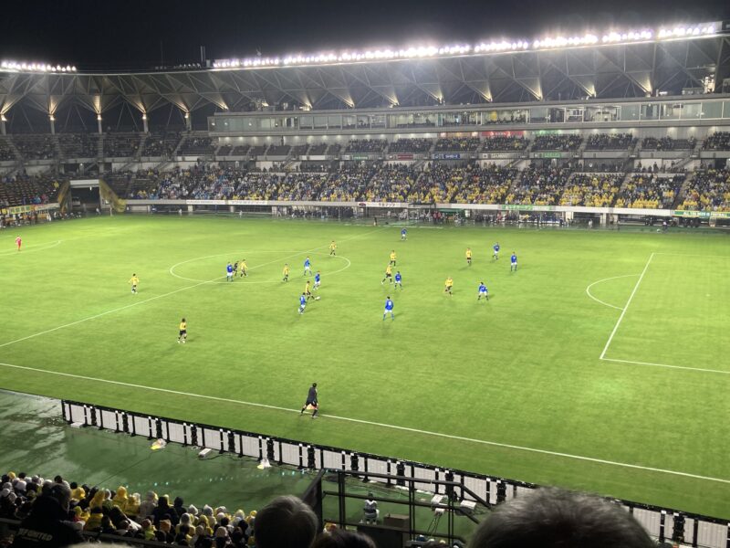上段後方の席だったけど、さすがサッカー専用。十分近い。